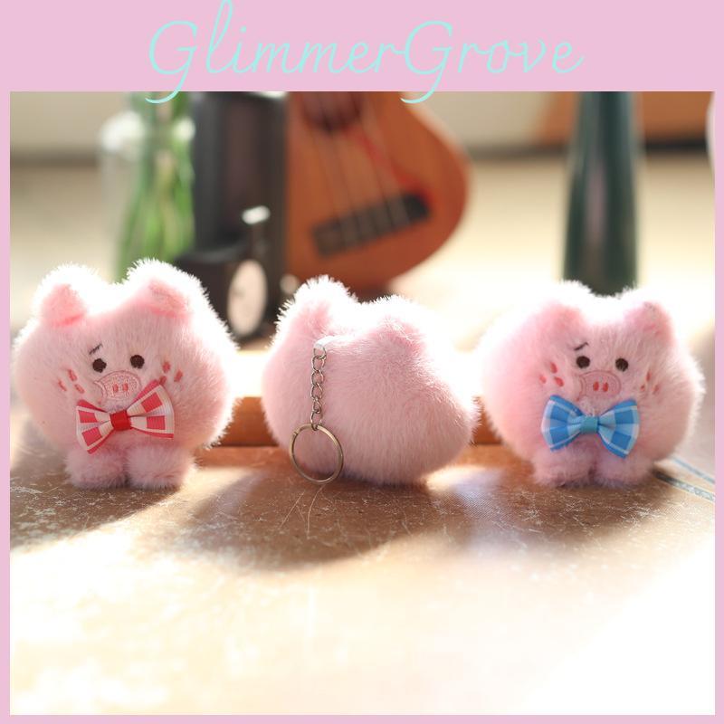 Plush Stuffed Animal Toy Super Soft Short Plush Bow Tie Keychain Backpack Charm Cute Pig Design For Kids Girls Gifts