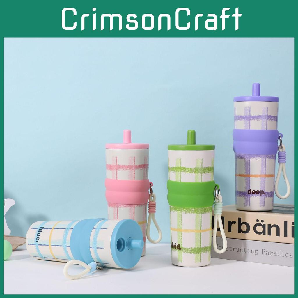 Letter Print Plaid Large Capacity Stainless Steel Insulated Cup Straw With