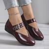 Modne buty Plus Size 35-43 dla kobiet Jesienna moda PU Płaskie Koturny Wygodne Antypoślizgowe Zapatos De Mujer Pasek z klamrą Buty do pracy