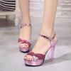 Moda 2024 Nowe Sandały Damskie Letnie Edycja Koreańska Wyszczuplające Odkryte Palce Wodoodporna Platforma Cienki Obcas Wysoki Obcas Wszechstronne Sandały