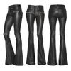 Women's Sexy Lace Up Flared PU Leather Trousers High Waist Bell Bottom Flared Pants