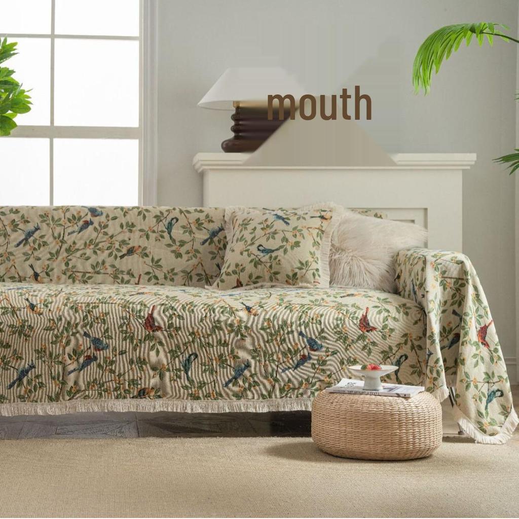 Pokrowiec żakardowy na sofę odporny na drapanie przez kota - Zielony, wzór retro kwiatowy i ptaki, świąteczny i gruby koc