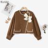 ZANZEA Damska bluzka z długim rękawem i okrągłym dekoltem w stylu casual i patchworkiem