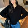 Light grade soft waxy inner lapel olo shirt knitted sweater women's autumn lazy and thin high-end bottoming top