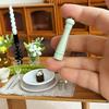 Yousheng 7Pcs/Set Miniature Kitchen Knives Set Metal Blade Black Handle Knife Seat Block Cutting Board Set 1:12 Scale Dollhouse Accessories