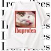 Koszulka Męska z Memem Kota Ibuprofen Casualowa Zabawna Koszulka z Grafiką Kota Moda O-Neck Męska Damska Odzież Unisex Streetwear