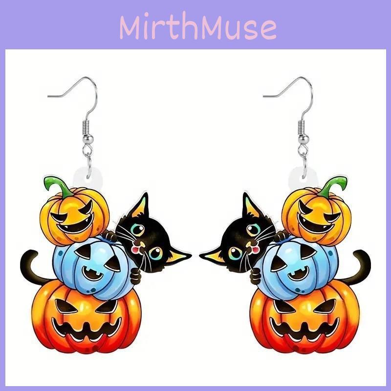 Halloween Themed Cat Pumpkin Skull And Dog Pattern Women Acrylic Earrings For Women And Men Fashion Accessory