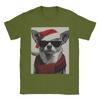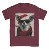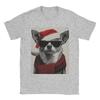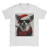 Christmas Chihuahua with Sunglasses Santa Hat Funny Dog T-Shirt Male Awesome T Shirts Breathable Tee Shirt Oversized Clothing
