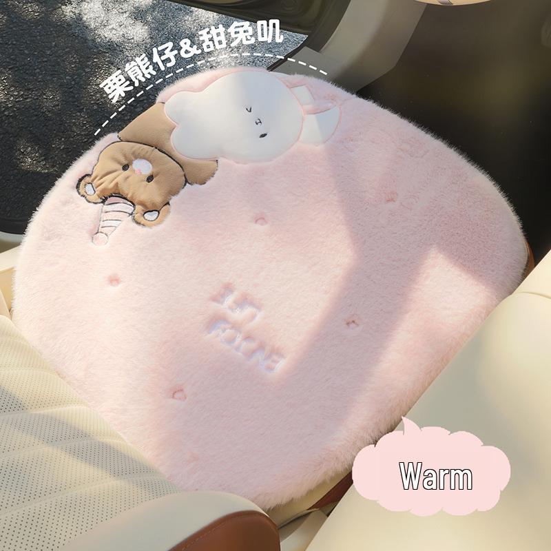 Zimowa kreskówkowa pluszowa poduszka na fotel samochodowy z misiem - Grube i ciepłe pokrycie wewnętrzne