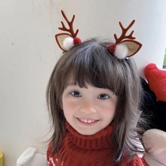 Yousheng 1 Pair Reindeer Antler Hair Clips for Christmas Fluffy Ear Headband with Pom Poms Festive Girls Hair Accessories Gift for Women Kids