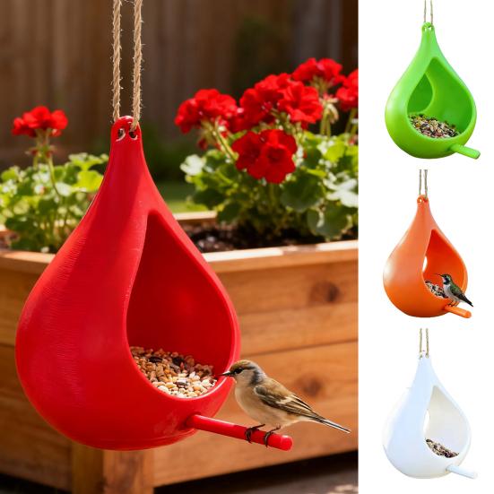 Wiszący karmnik dla ptaków w kształcie kropli, karmnik dla kolibrów z grzędą, łatwy do napełniania, wiszący karmnik dla ptaków, na zewnątrz, balkon, ogród