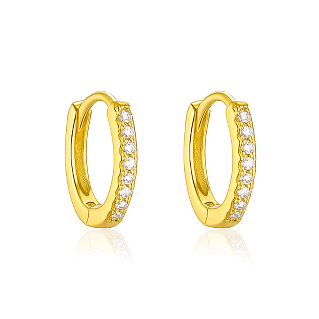 Mini Sleek Pavé Huggie Hoop Earrings - Sterling Silver Yellow Plated