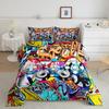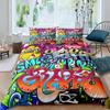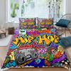Rock Music Graffiti Duvet Set, Hip Hop Art Bedroom Supplies Quilt Set Three-Piece Set
