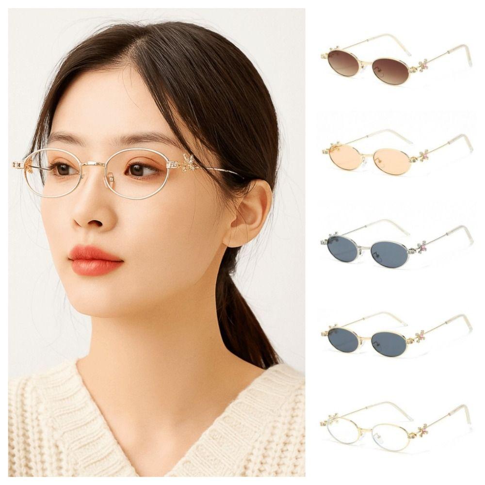 Błyszczące okulary przeciwsłoneczne z cyrkoniami Małe okulary blokujące niebieskie światło Proste owalne damskie okulary Unisex