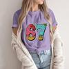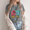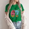 Damski Modny Casualowy T-shirt z Krótkim Rękawem z Nadrukiem Top z Okrągłym Dekoltem