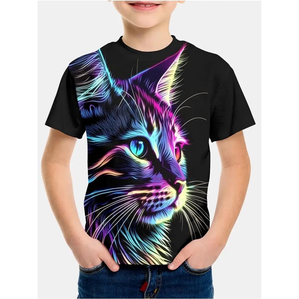 Kids Clothes Summer Short Sleeves Tops 3D Print Cool Cat Graphic T Shirts Outdoor Fashion Street Style Children's Boy's Clothing