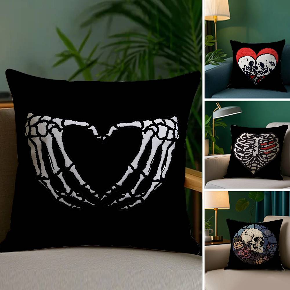 Cool Skull Heart Pillow Case Plush Fabric Soft Double Sided Print Sofa Cushion Cover Throw Pillow Covers