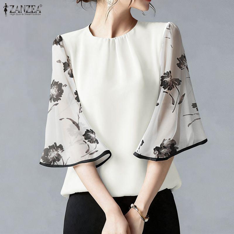 ZANZEA Women Casual Round Neck Loose Splice Half Sleeve Blouse