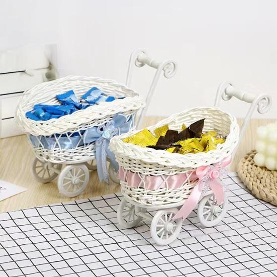 Rattanowy Koszyk na Kwiaty do Wózka Mały Tkany Koszyk do Przechowywania Uchwyt na Sztuczne Kwiaty