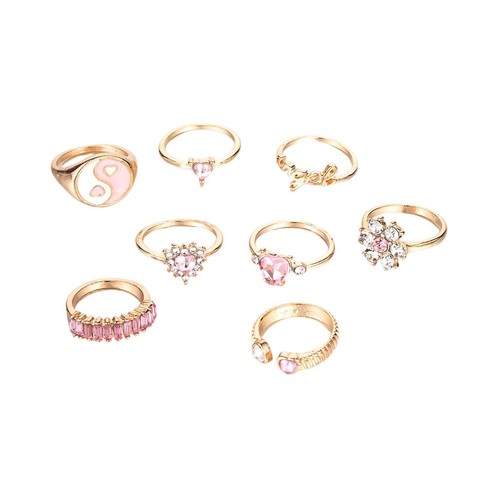 Modny 8-częściowy zestaw pierścionków damskich - Pierścionek damski Metalowy pierścionek Błyszczący pierścionek Metalowy pierścionek Prezent świąteczny