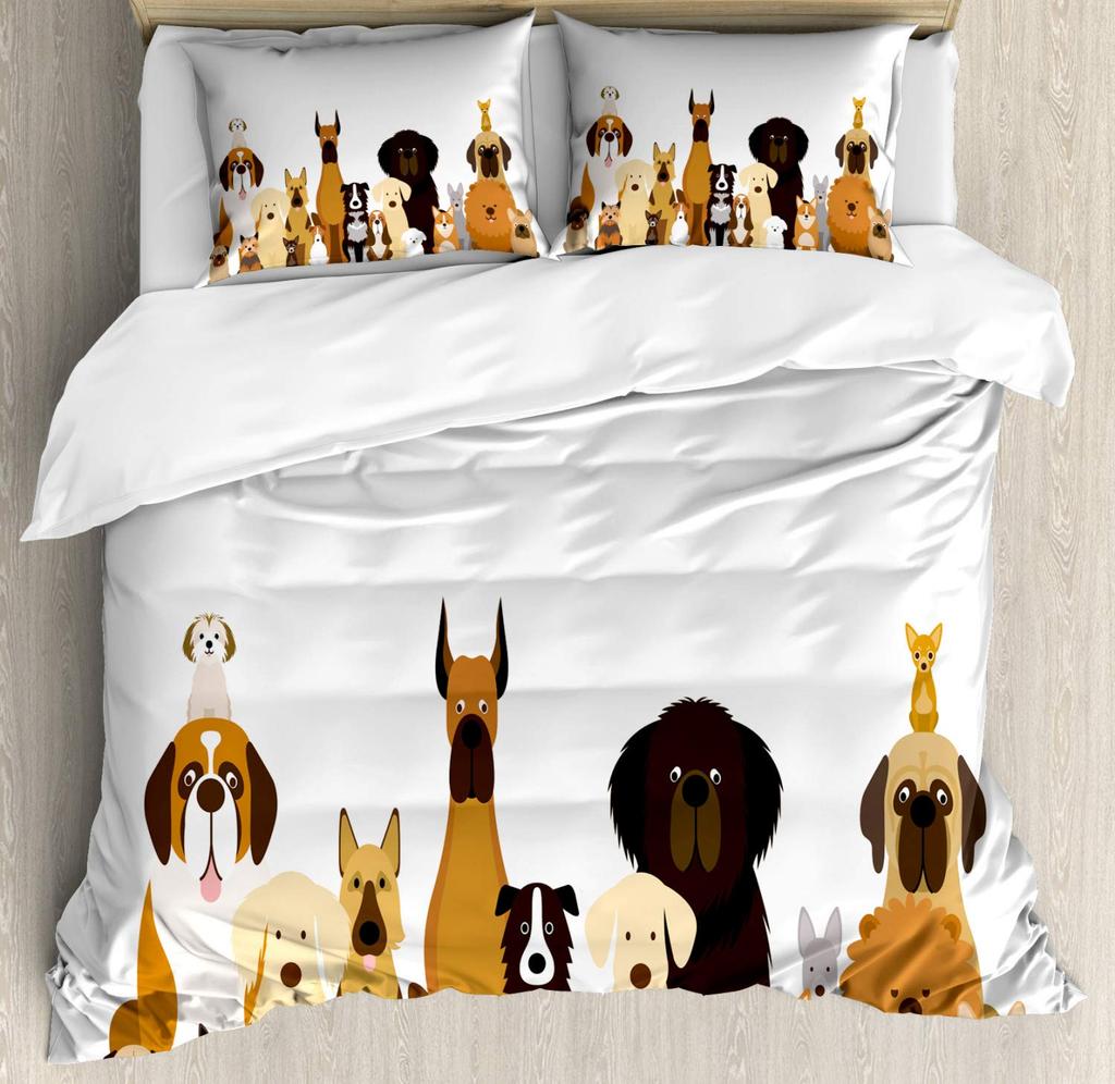 Group Of Dogs Duvet Cover Sets For Kids Teens Boys Girls Lightweight Bedspread Cover Room Decor Family Type Species Bedding Set