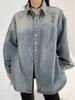 POLO Retro Niebieska Koszula Denim Damska Wysokiej klasy Talia Slim Fit Kurtka Top
