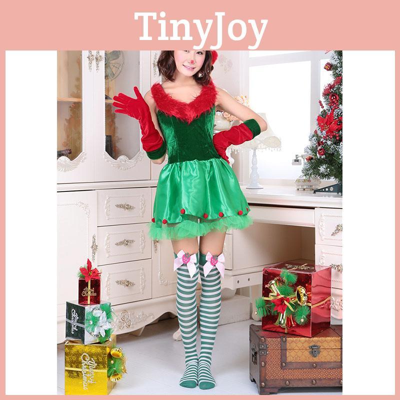 Premium Quality Women's Fashion Sexy Green Christmas Cosplay Elf Costume Dress Set