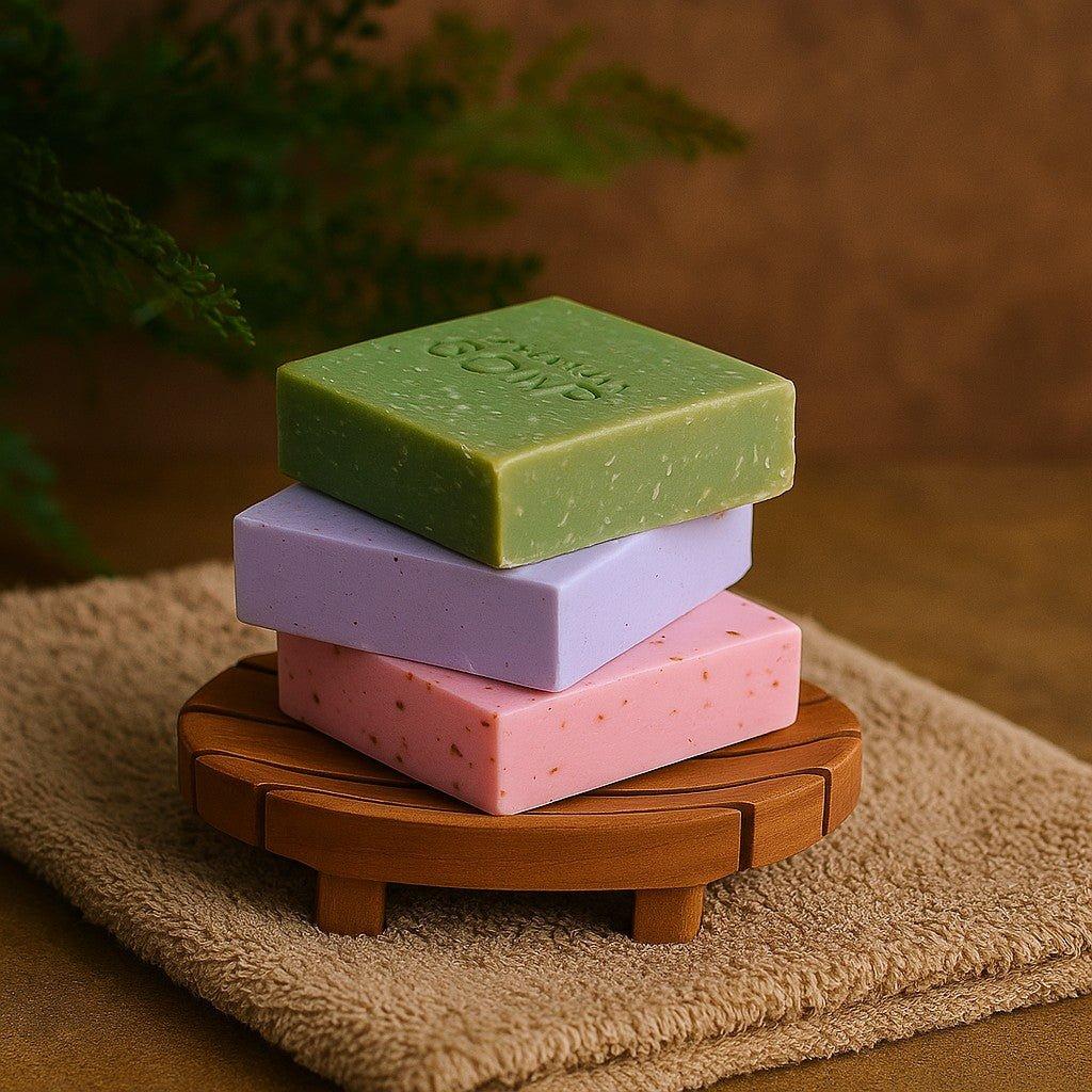 Bar Soap Set, 3 Soaps and Dish Greenman