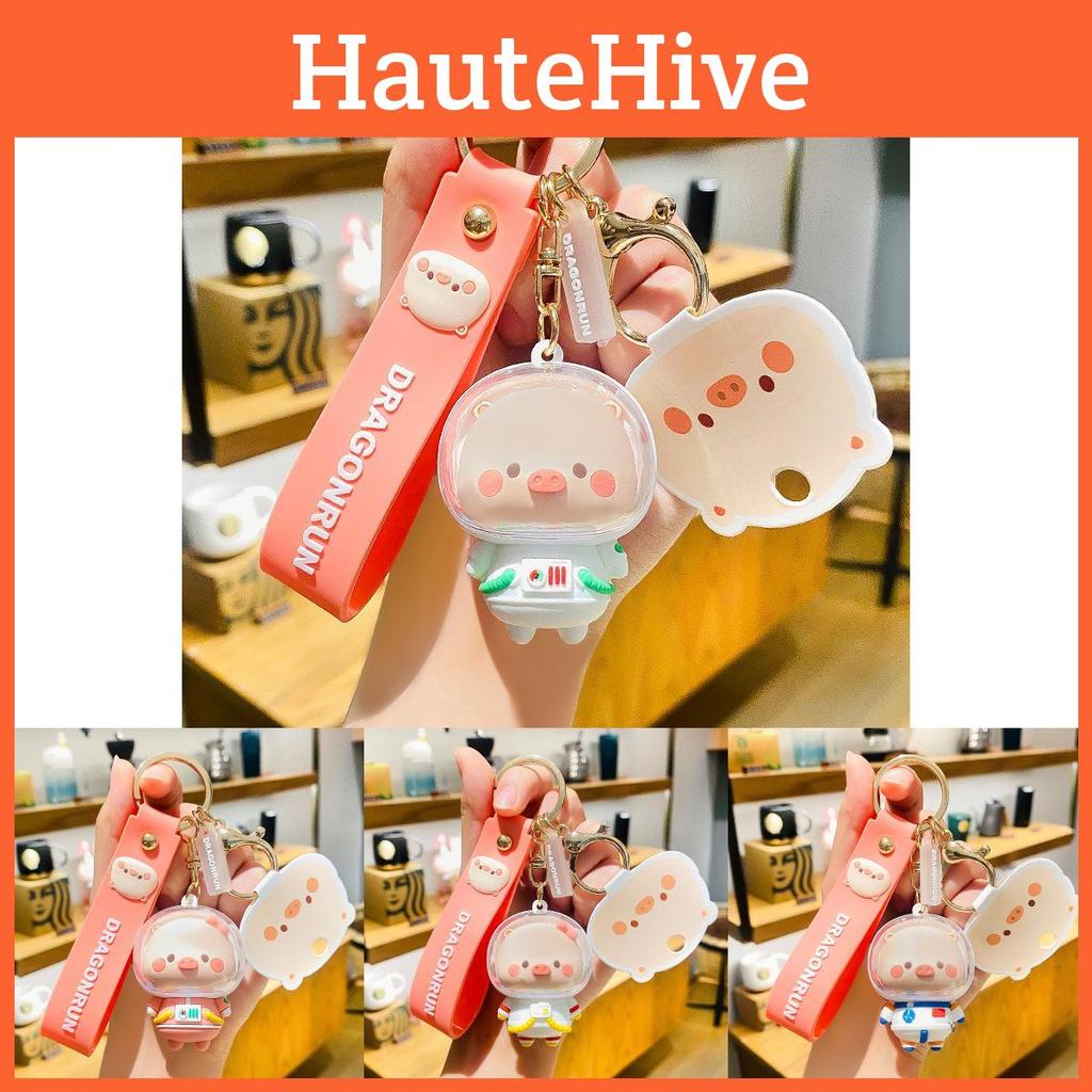 Adorable Piggy Astronaut Silicone Keychain Exquisite Car Key Accessory For Bags