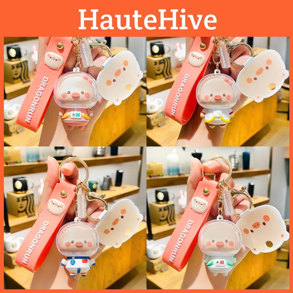 Adorable Silicone Pig Astronaut Keychain Cute Space Character Key Accessory