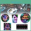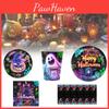Bright Halloween Glow Disposable Party Supplies Set For 12 Featuring Paper Plates Cups Napkins And Tablecloth