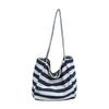 Stylish Korean Ins Color Block Striped Canvas Tote Bag Large Capacity For Shopping