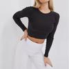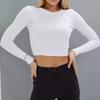 Damskie dzianinowe prążkowane dopasowane koszulki basic z długim rękawem i okrągłym dekoltem