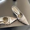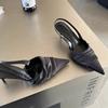 Modne Oszałamiające Nowe Damskie Sandały w Chińskim Stylu Letnia Moda Francuski Szpiczasty Nosek Bez Pięty Satynowy Pasek Wysoki Obcas Czarne Pojedyncze Buty