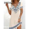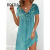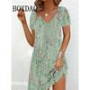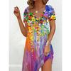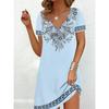Fashion Plus-Size Dress Casual Loose V-Neck Ladies Summer Print Party Women's New Summer Pullover Short Sleeve Dress