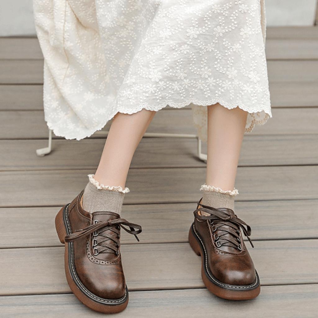 Modne okrągłe palce małe skórzane buty dla kobiet 2024 nowe brytyjskie pojedyncze buty w stylu japońskie zabytkowe brązowe skórzane buty