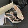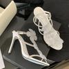Moda Luksusowe Cyrkonie Koronkowe Kwiaty Dekoracja Damskie Sandały Gladiator Modne Wąski pasek Pasek na kostkę Wysokie obcasy Letnie Buty na Imprezę Bal