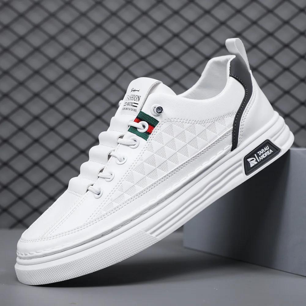 Moda Męskie Buty 2024 Nowe Męskie Casualowe Buty Boardowe z Miękkiej Skóry Modne Lekkie Elastyczne Buty Małe Białe dla Pary