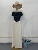 Wiosna 2024 Czarno-biała satynowa sukienka slim fit z bufiastymi rękawami