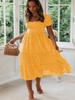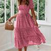New Wish Floral Bubble Sleeve Ruched Dress Long Dress