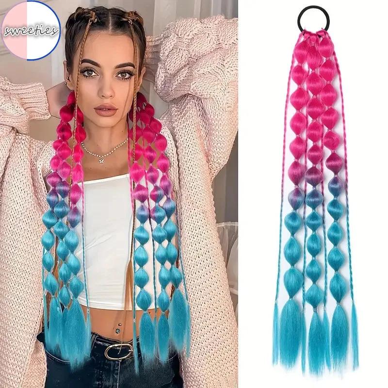 60CM Color Bubble Braid Synthetic Wig Fashion Hip-hop Color Gradient Ladies Wig Simulation Natural High Temperature Silk Hair