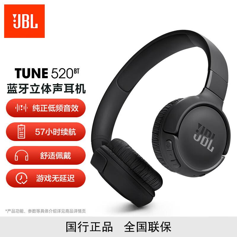 Słuchawki bezprzewodowe JBL TUNE 520BT z Bluetooth, Konstrukcja zamknięta, Do 57 godzin ciągłego odtwarzania, Nauszne, Ładowanie USB typu C, Wielopunktowe