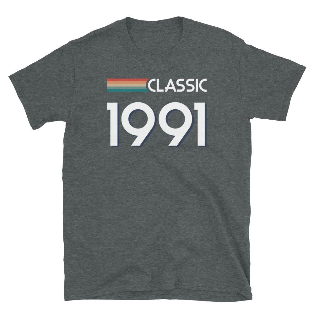 Klasyczny Graficzny T-shirt Unisex z Krótkim Rękawem w Stylu Retro, Inspirowany Rocznikiem 1991