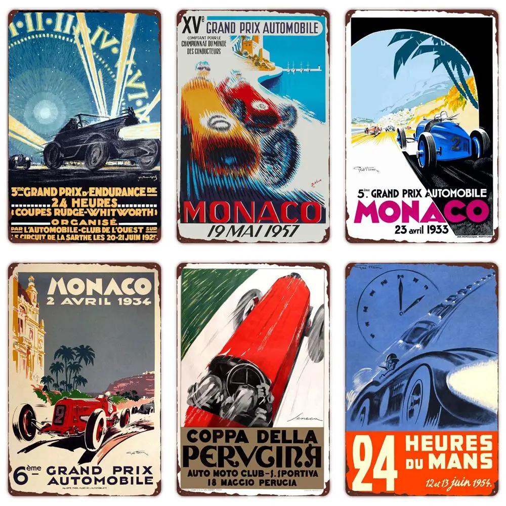 Monaco Grand Prix Vintage Metal Sign, Car Racing Tin Plaque, Motorcycle Retro Poster For Bar, Man Cave, Home, Autos Wall Decor