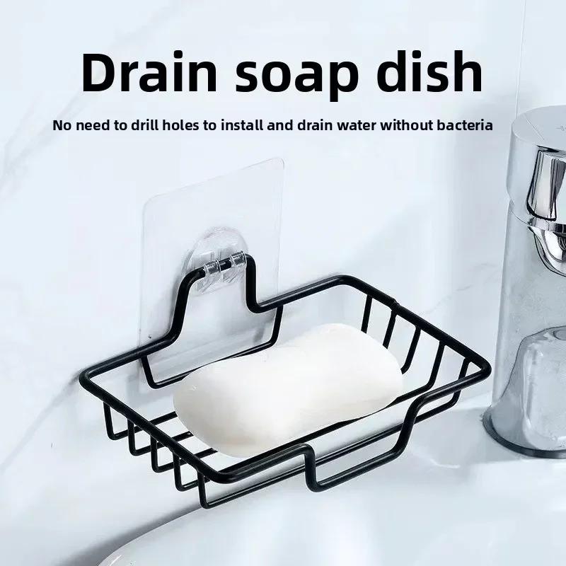 Stainless Steel Sponge Dish Shampoo Holder Wall Mounted Bathroom Kitchen Self Adhesive Storage Rack No-drilling Soap Rack