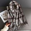 Fashion Korea Styles Luxury Stripe Winter Women Scarf Imitation Cashmere Thick Warm Pashmina Shawl Wraps Tassel Echarpe
