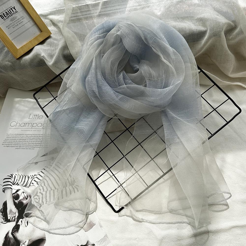 Thin Yarn Blue Women'S Hemp Mulberry Silk Scarf Women'S Autumn Versatile Elegant Literary Silk And Hemp Shawl