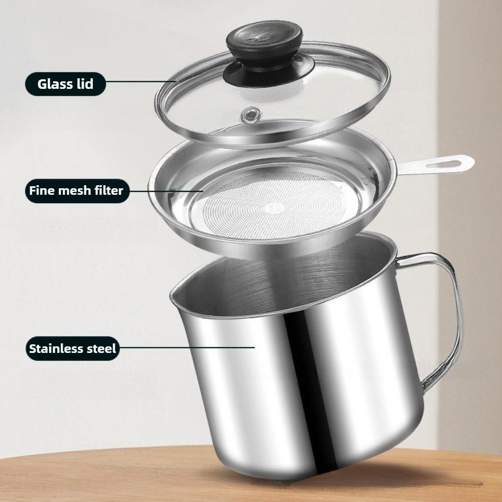 Stainless Steel Oil Filter Pot Household Cooking Oil Storage Can with Strainer Cover Easy-Grip Handle Oil Container Kitchen Tool