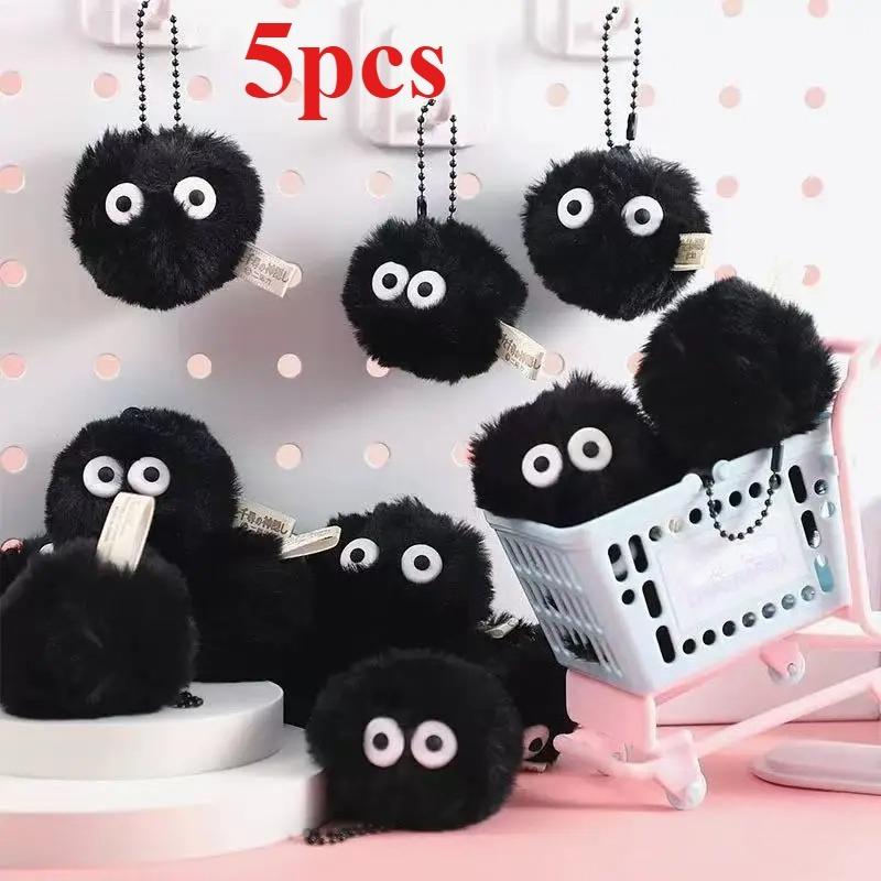 5pcs Pet Toy Coal Ball Figurines Keychains Accessories Cute Plush Black Coal Ball Cartoon Bag Pendants