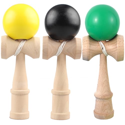 Ozora Kendama 3-Piece Set, Wooden Kendama for Competition and Practice (Black, Yellow, and Green)